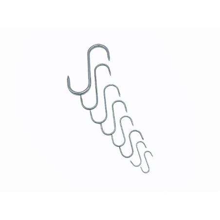 Ces crochets en forme de "S" de 120 mm sont conçus pour suspendre facilement les viandes, charcuteries ou autres produits dans les environnements professionnels. Fabriqués en acier robuste, ils offrent une excellente résistance à l’humidité et à la corrosion. Parfaits pour les chambres froides, laboratoires ou ateliers de découpe. Vendu par lot de 10.